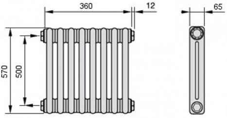 Трубчатые радиаторы ARBONIA строительная длина 45 мм. Секции сварены между собой. Радиатор состоит из верхнего и нижнего коллекторов, которые соединены мжду собой трубками из прецизионной стали диаметром 25 мм*1,5 мм. Радиаторы поставляются подготовленными к монтажу: с двумя присоединительными переходниками (1/2,3/4), с переходником под кран Маевского и заглушкой. Теплоотдача испытана по EN442 и зарегистрирована под Nr.2602E.