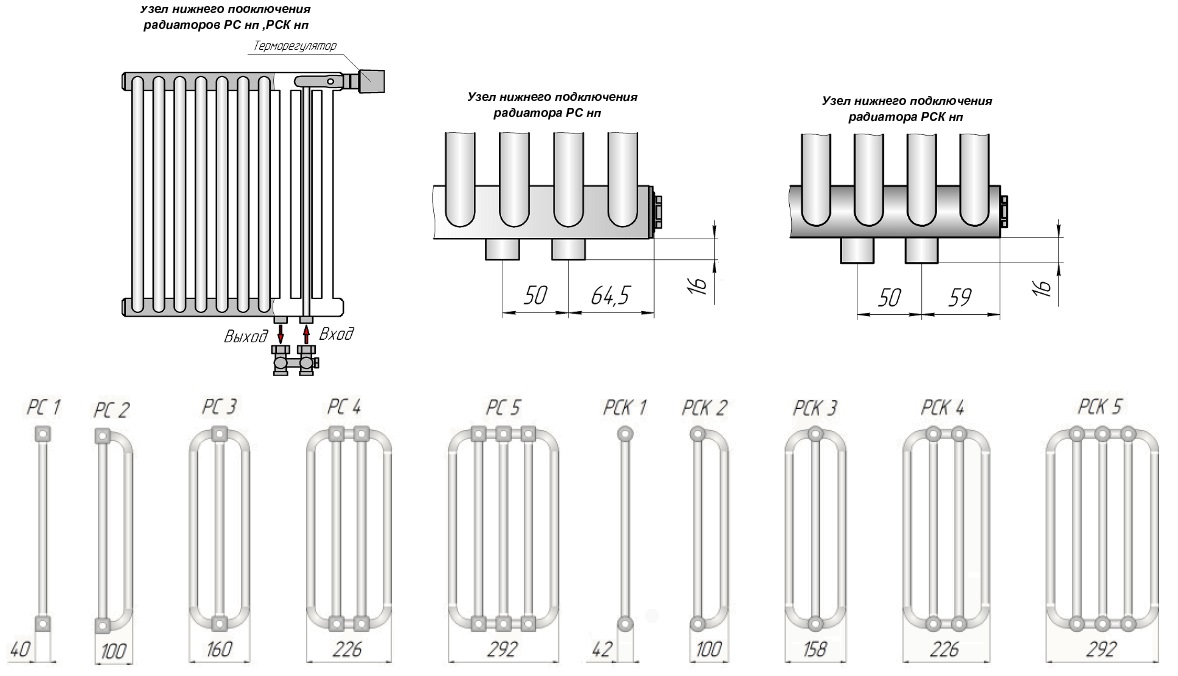 Представленная коллекция стальных трубчатых радиаторов КЗТО РС имеет в своем арсенале пять вариантов исполнения изделия. Также стоит отметить, что линейка РС, по конструкции и всём разнообразии, схожа с линейкой РСК. Главное отличие заключается в форме коллектора, где у РСК коллектор выполнен в виде классической трубы, а РС имеет коллектор квадратной формы.
