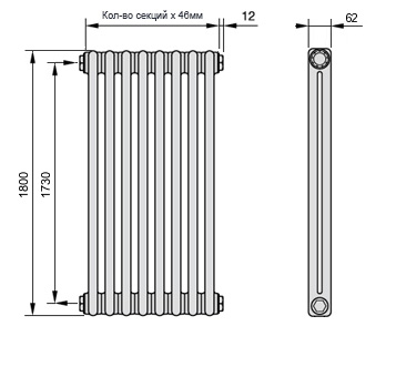 Собраны из секций длиной 46 мм, соединенных друг с другом с помощью сварки в коллекторной части. Защитное покрытие. Поверхность радиаторов проходит пять стадий обработки: две стадии очистки, грунтовка, окраска порошковой эмалью в электростатическом поле, тепловая и антистатическая обработка.