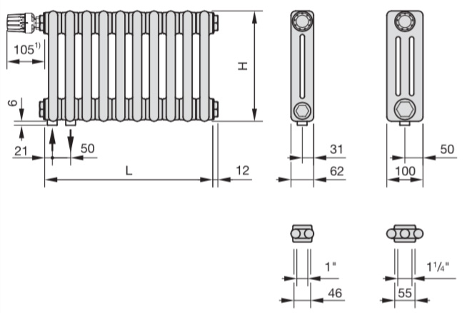 Zehnder Charleston-трубчатый секционный радиатор из стали. Отдельные элементы (ширина элнмента 46 мм) свариваются в готовый радиатор; радиатор грунтуется, покрывается порошковой эмалью RAL 9016 и подвергается горячему обжигу в соответствии с DIN 55900.Тепловая мощность проверена в соответствии со стандартом EN 442.